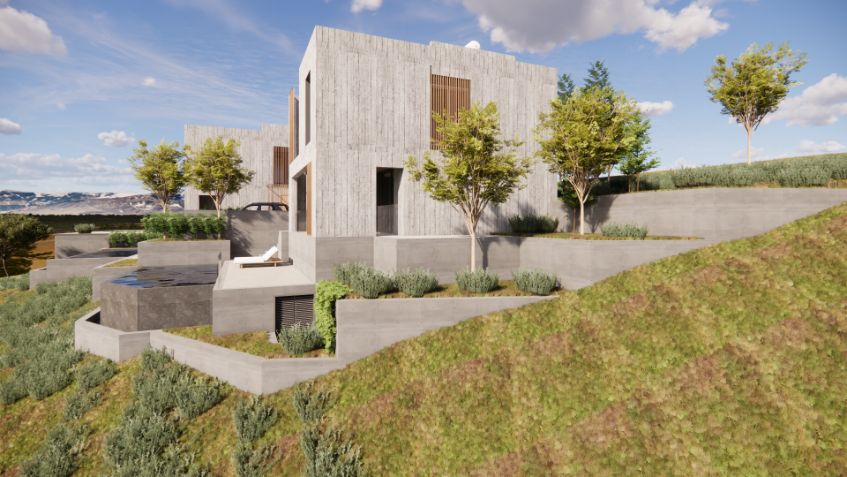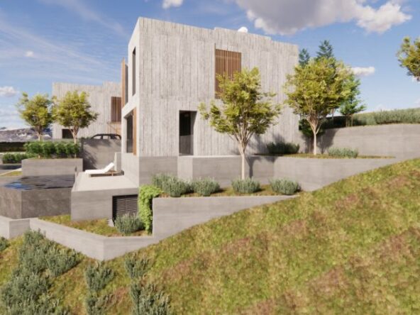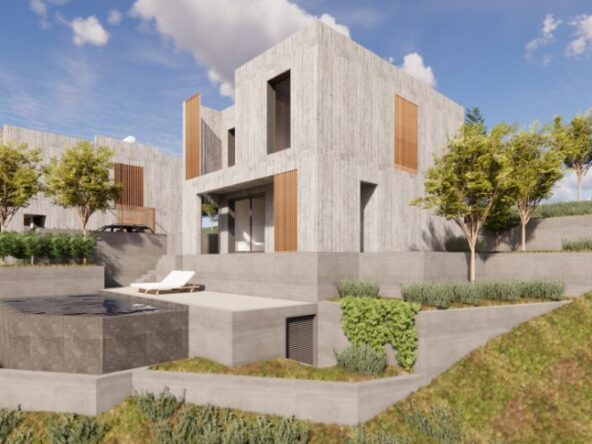This Residences is a unique project in the prestigious area of Konia, Paphos. This exclusive development features two exceptional villas, designed to offer a perfect blend of luxury, comfort, and contemporary architecture. Each villa is characterized by a sophisticated design with board-form concrete exterior walls, creating a modern aesthetic. The spacious interiors include three elegantly designed bedrooms and open-plan living areas that maximize space, functionality, and natural light. High-end materials and premium finishes ensure durability and refined elegance throughout the property. The outdoor spaces are thoughtfully designed, featuring beautifully landscaped gardens and a private swimming pool, ideal for relaxation and entertainment. Expansive verandas and carefully planned outdoor areas enhance the sense of tranquility, offering the perfect setting to enjoy the Mediterranean sun. Ideally located in one of Paphos’ most sought-after yet peaceful residential areas, these villas offer easy access to local amenities, international schools, and the city center while providing a peaceful and exclusive living environment.