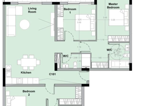 – Resort – style facilities: swimming pools, spa, gym, yoga room, tennis court