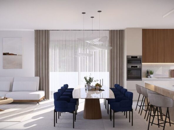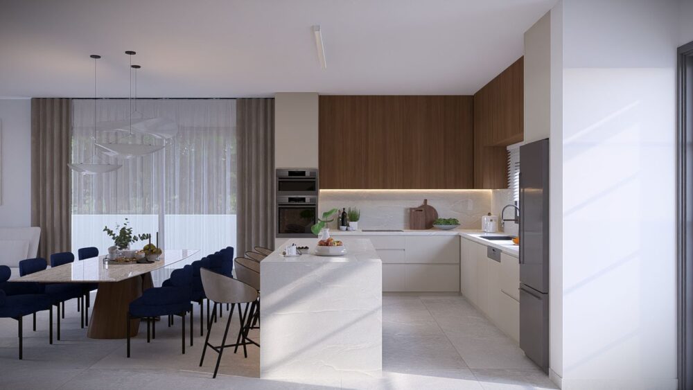 Each two-story villa features 146 sq.m. of thoughtfully designed living space, complemented by 15-17 sq.m. of covered verandas and spacious private plots ranging from 234-248 sq.m. The open-plan design allows for seamless flow between the kitchen, dining, and living areas, creating a bright and inviting atmosphere.