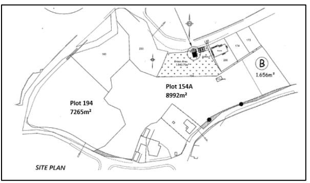 The land comprises 2 plots (194 & 154A) with a combined total area of 16,257m², an approved build