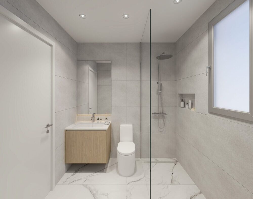 1-bedroom unit offers 60 sqm of elegant living in a prime, peaceful location only 5 minutes from the sea.